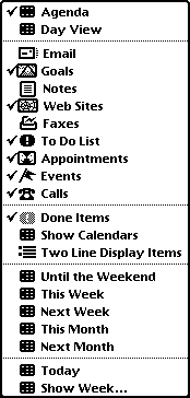 | DateMan 3.1 also includes several special types of items. You now can include Email, Web sites, Faxes, and Goals; as well as Notes, Calls, Appointments, Events, and To Do Tasks. |