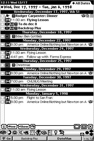 DateMan presents your schedule in a clean, uncluttered fashion, and gives you the